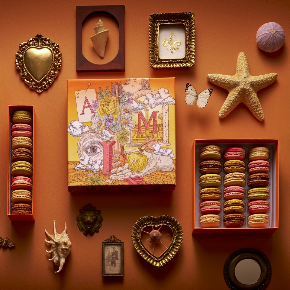 Sélectionnez votre coffret Collection ou Signature parmi 6 formats puis composez votre assortiment de macarons parmi 18 saveurs incontournables ou éphémères.