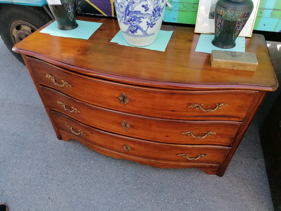 Commode galbée Bernoise Louis XV XVIIIème en cerisier massif. 3 tiroirs en parfait état.