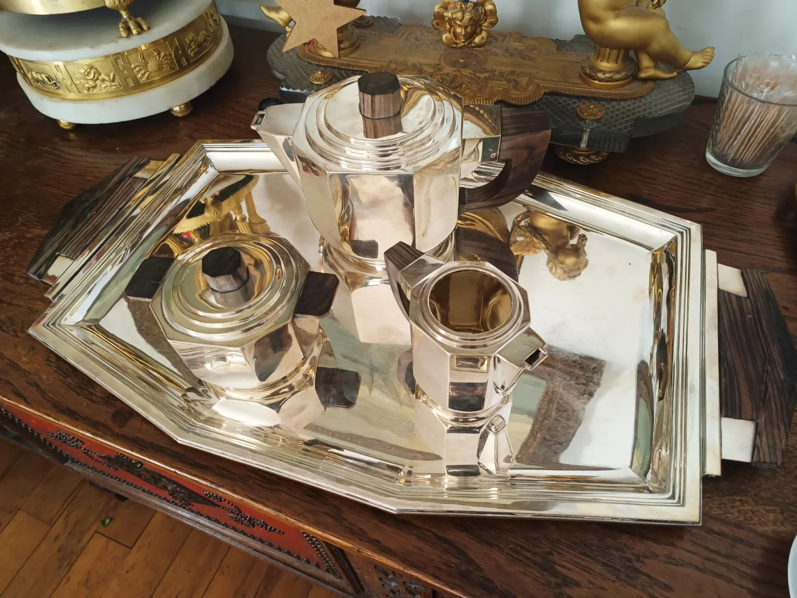 Service à thé D'époque Art déco en argent massif Minerve premier titre .