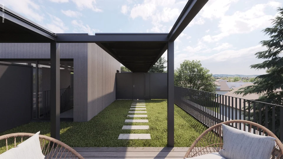 The private terrace overlooking the garden invites you to relax, perfect for al fresco dining.
