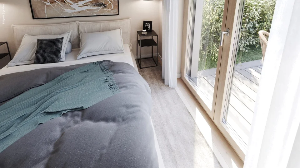 Large triple-glazed windows provide superior sound and heat insulation (THPE standard).